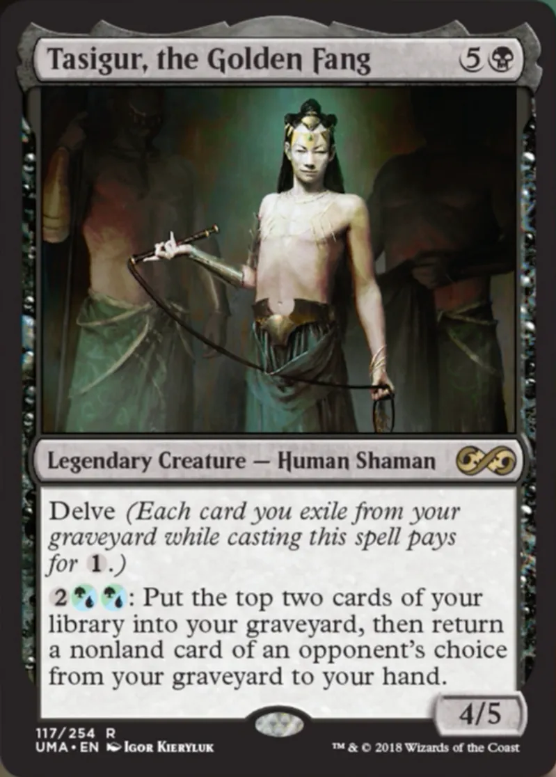 Magic: the Gathering (mtg) Rare Legendary Creature — Human Shaman Tasigur, the Golden Fang from Ultimate Masters (UMA) last updated 2026-02-21 16:55:02