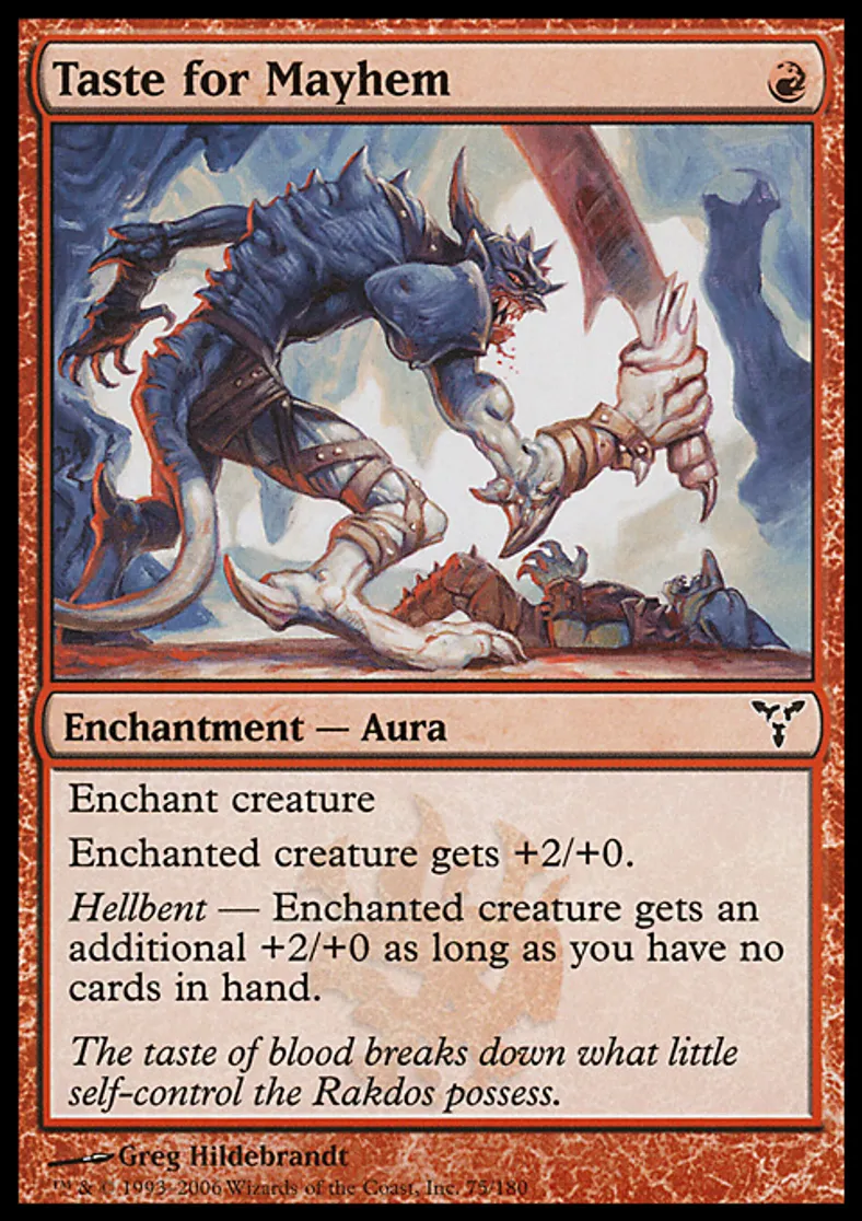 Magic: the Gathering (mtg) Common Enchantment - Aura Taste for Mayhem from Dissension (DIS) last updated 2026-02-21 17:11:02