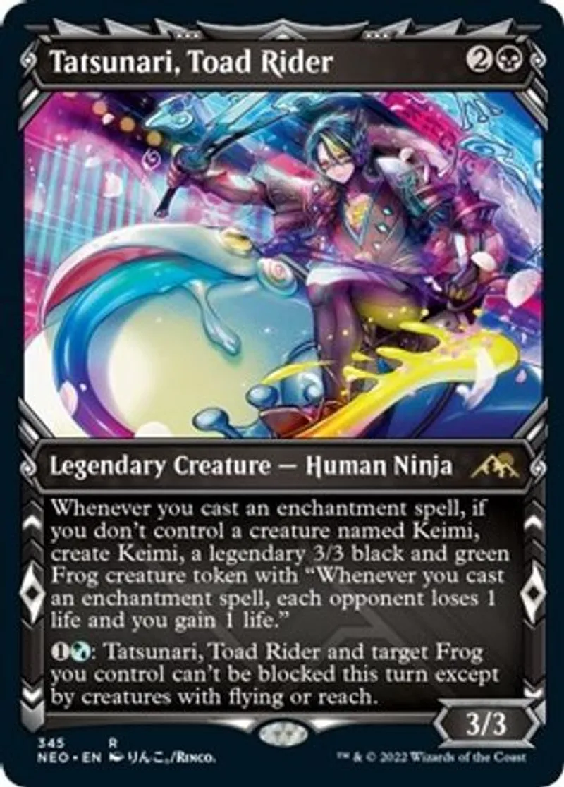 Tatsunari, Toad Rider (Showcase) is a Rare in the set Kamigawa: Neon Dynasty.