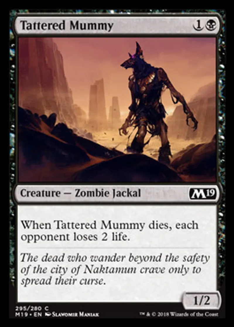 | Oracle Text | When Tattered Mummy dies, each opponent loses 2 life. | ||