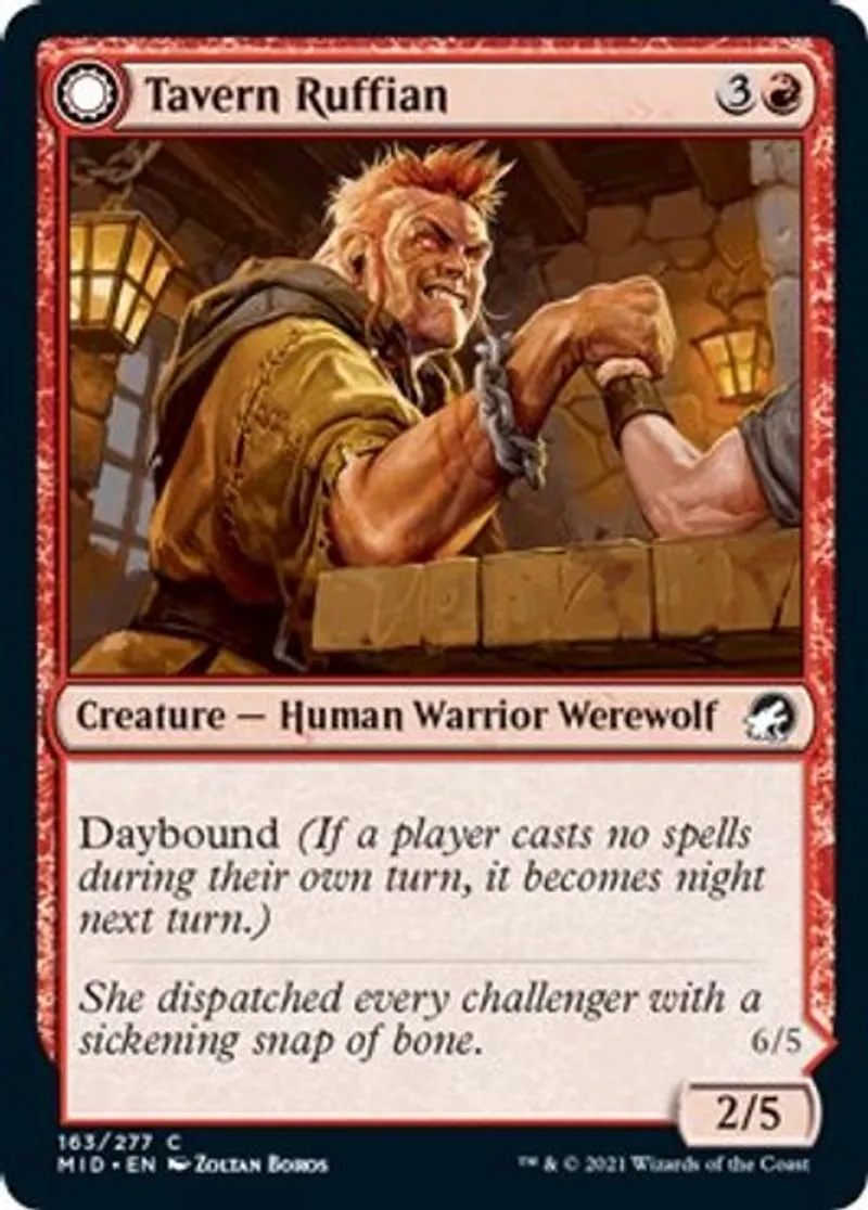 Magic: the Gathering (mtg) Common Creature — Human Warrior Werewolf Tavern Ruffian from Innistrad: Midnight Hunt (mid) last updated 2026-02-21 16:41:32