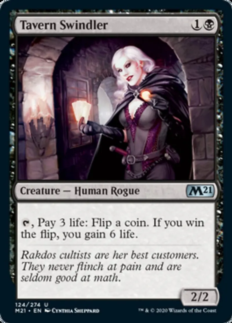 Magic: the Gathering (mtg) uncommon Creature — Human Rogue Tavern Swindler from Core Set 2021 (m21) last updated 2026-02-21 16:26:32
