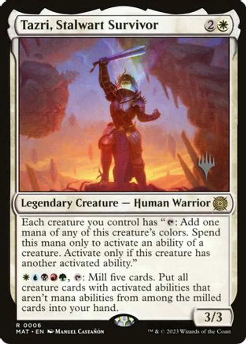 Magic: the Gathering (mtg) Rare Legendary Creature — Human Warrior Tazri, Stalwart Survivor from Promo Pack: The Lost Caverns of Ixalan (PLCI) last updated 2026-02-25 15:12:32