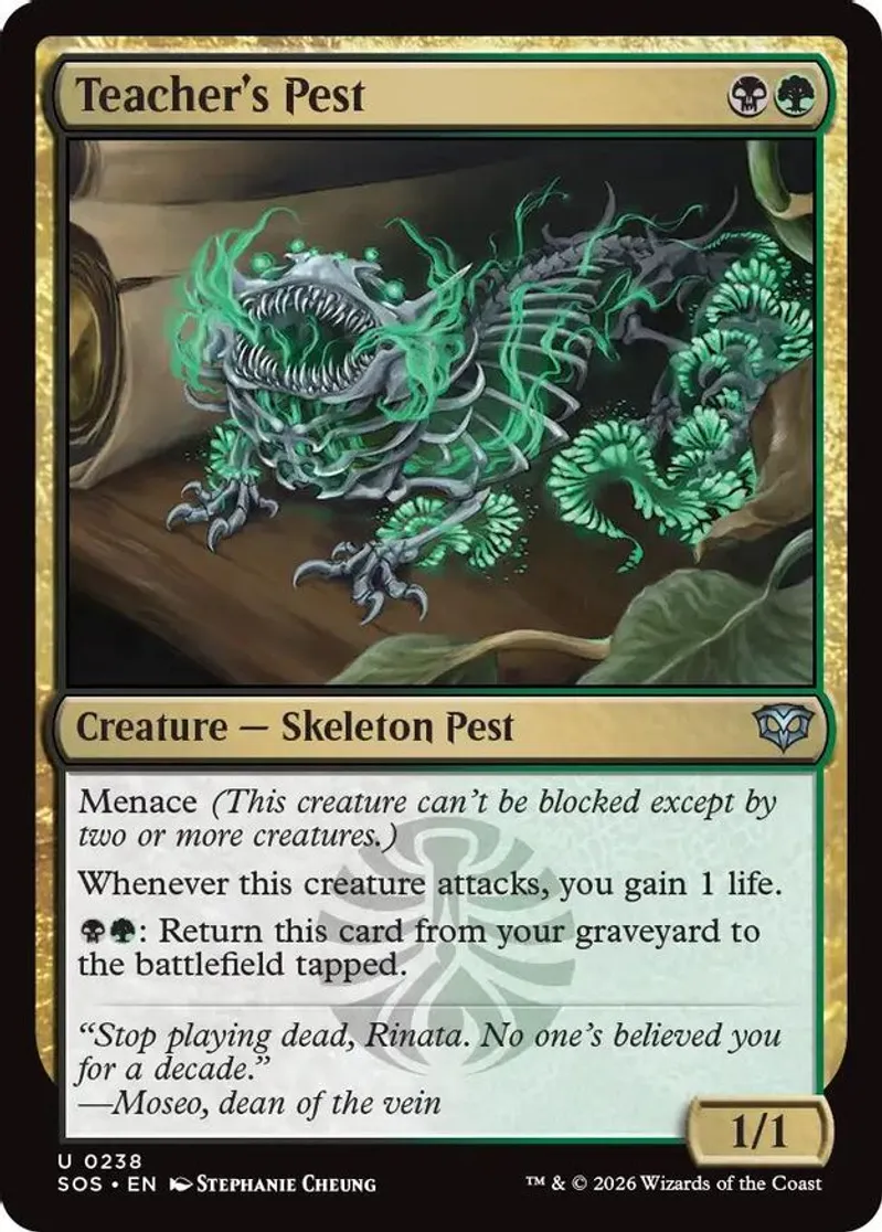 Magic: the Gathering (mtg) Uncommon creature — skeleton pest Teacher's Pest from Secrets of Strixhaven (SOS) last updated 2026-04-16 23:12:04