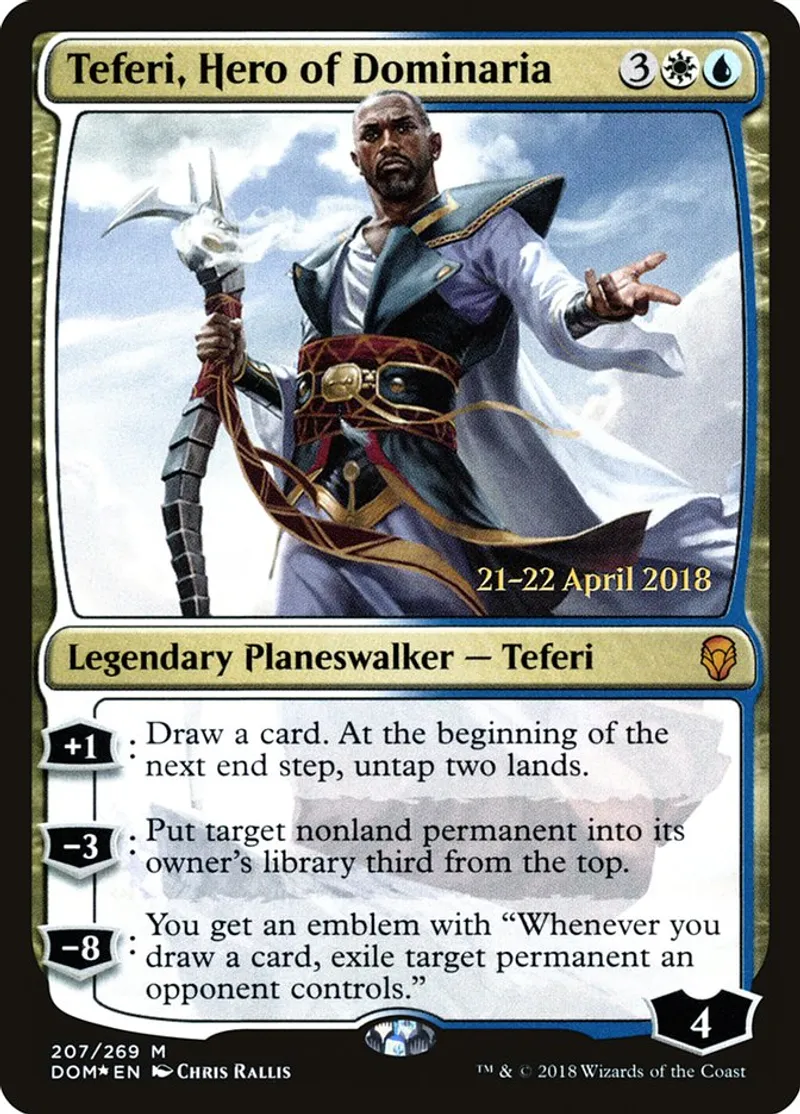 Magic: the Gathering (mtg) Mythic Rare Legendary Planeswalker - Teferi Teferi, Hero of Dominaria from Prerelease Cards (pPRE) last updated 2026-02-24 14:42:02