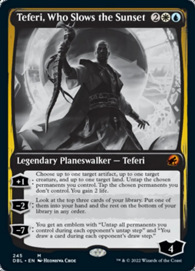 Magic: the Gathering (mtg) mythic Legendary Planeswalker — Teferi Teferi, Who Slows the Sunset from Innistrad: Double Feature (dbl) last updated 2026-02-24 15:06:02
