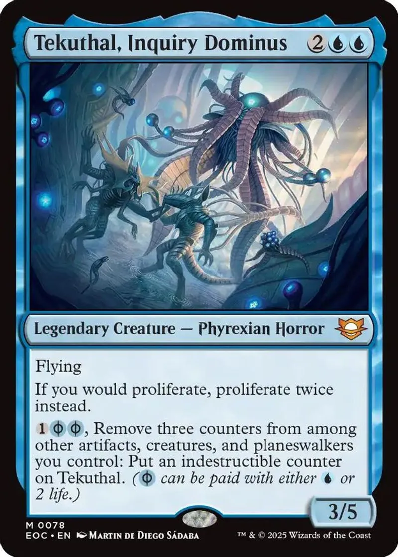 Magic: the Gathering (mtg) Mythic Rare legendary creature — phyrexian horror Tekuthal, Inquiry Dominus from Commander: Edge of Eternities (EOC) last updated 2026-01-19 14:51:06