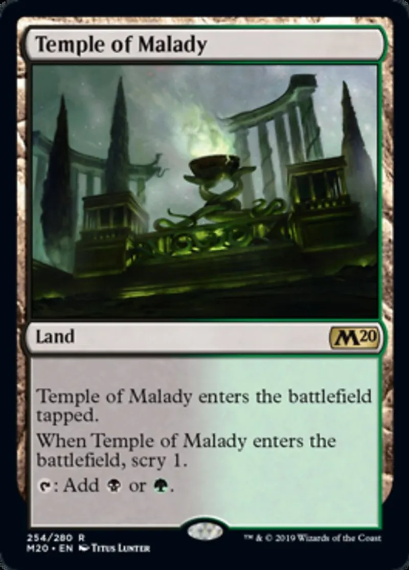 When Temple of Malady enters the battlefield, scry 1. (Look at the top card of your library. You may put that card on the bottom of your library.)