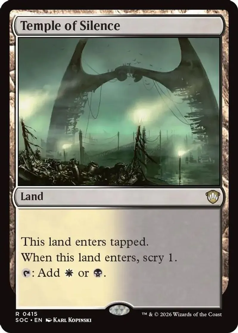 Magic: the Gathering (mtg) Rare land Temple of Silence from Commander: Secrets of Strixhaven (SOC) last updated 2026-04-17 00:26:10