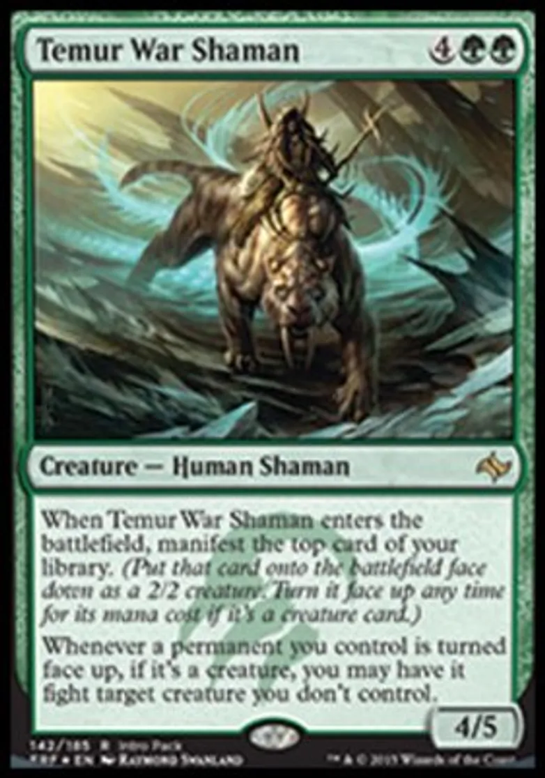 | Oracle Text | When Temur War Shaman enters the battlefield, manifest the top card of your library. (Put that card onto the battlefield face down as a 2/2 creature. Turn it face up any time for its mana cost if it's a creature card.)