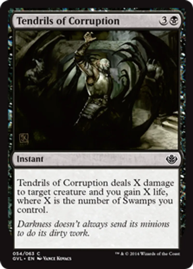 | Oracle Text | Tendrils of Corruption deals X damage to target creature and you gain X life, where X is the number of Swamps you control. | ||