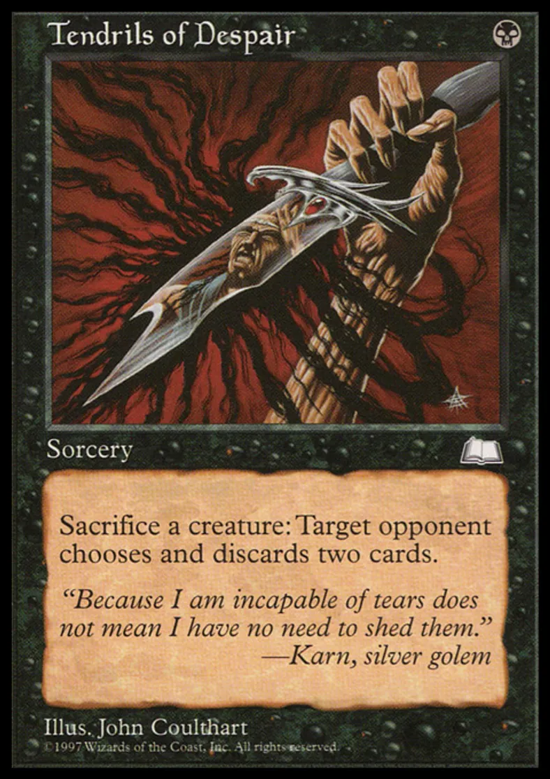| Oracle Text | As an additional cost to cast Tendrils of Despair, sacrifice a creature. Target opponent discards two cards. | ||
