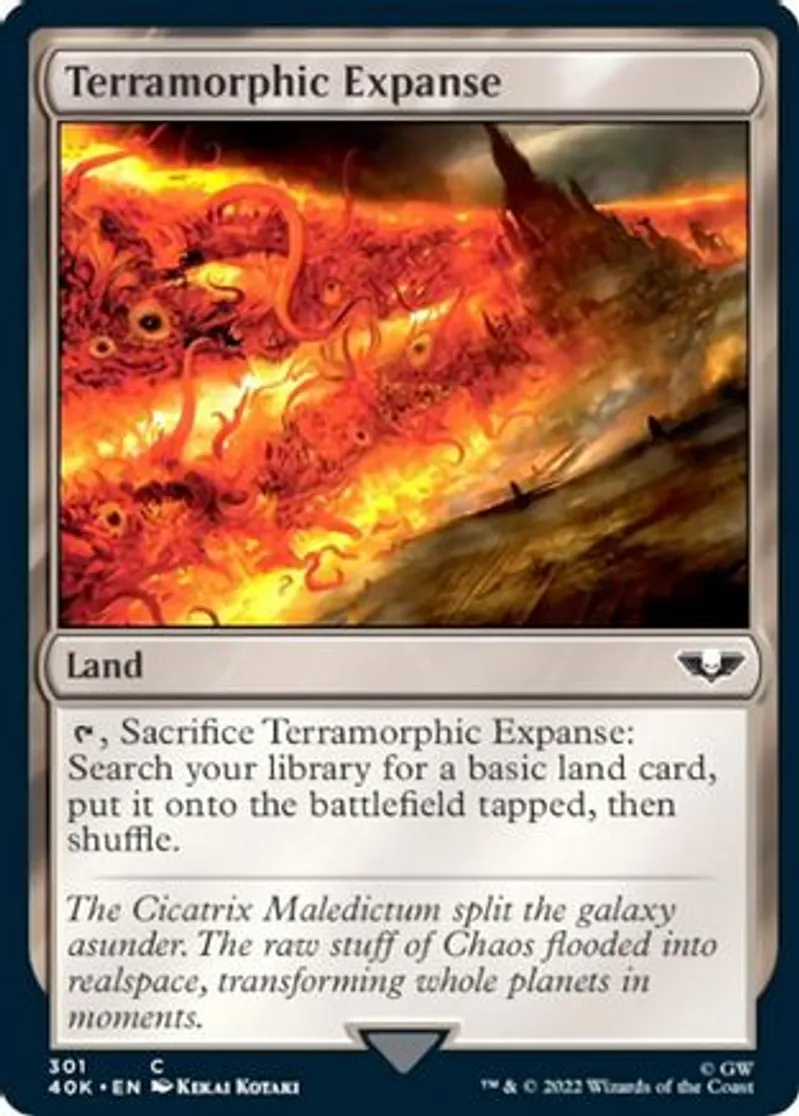 Magic: the Gathering (mtg) Common Land Terramorphic Expanse from Warhammer 40,000 (40K) last updated 2026-02-21 16:14:07
