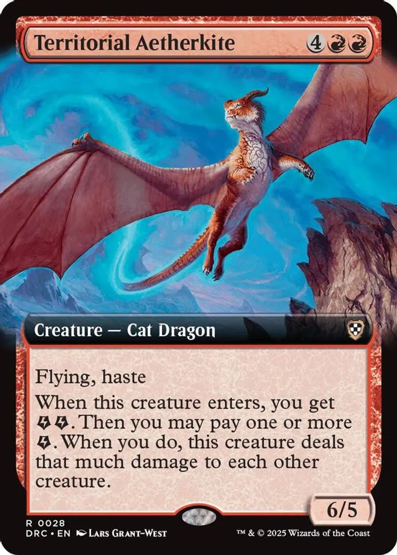 Magic: the Gathering (mtg) Rare creature — cat dragon Territorial Aetherkite from Commander: Aetherdrift (DRC) last updated 2025-12-13 15:36:32