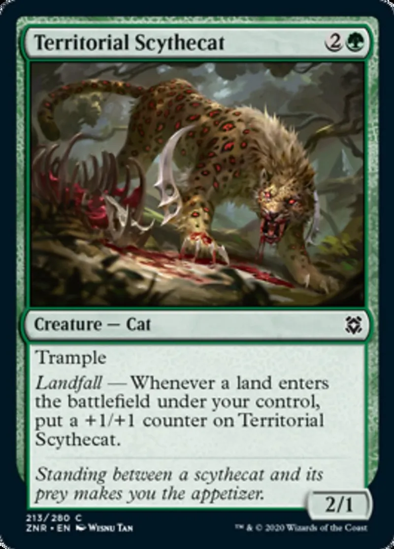Territorial Scythecat is a common in the set Zendikar Rising.