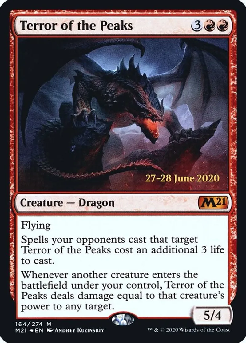 Terror of the Peaks (M21) is a Mythic Rare in the set Prerelease Cards.