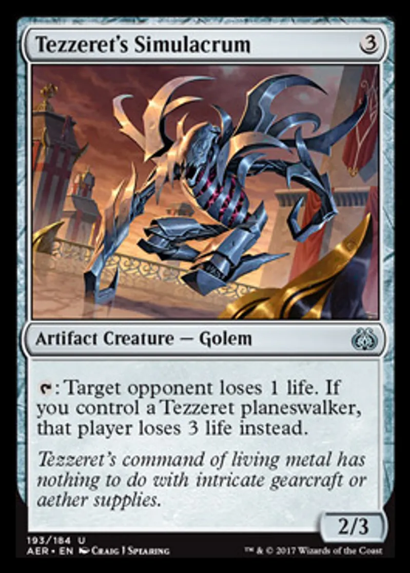 Tezzeret's Simulacrum is a Uncommon in the set Aether Revolt.
