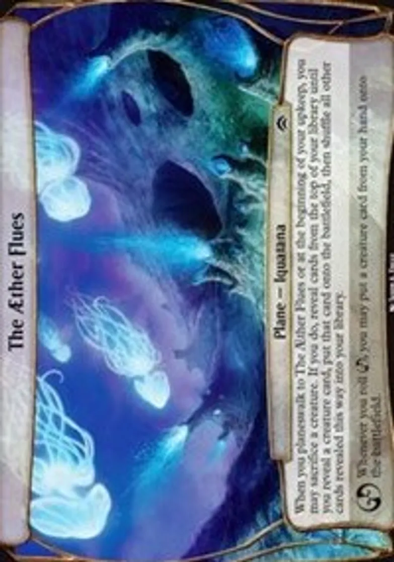 | Oracle Text | When you planeswalk to The Aether Flues or at the beginning of your upkeep, you may sacrifice a creature. If you do, reveal cards from the top of your library until you reveal a creature card, put that card onto the battlefield, then shuffle all other cards revealed this way into your library.