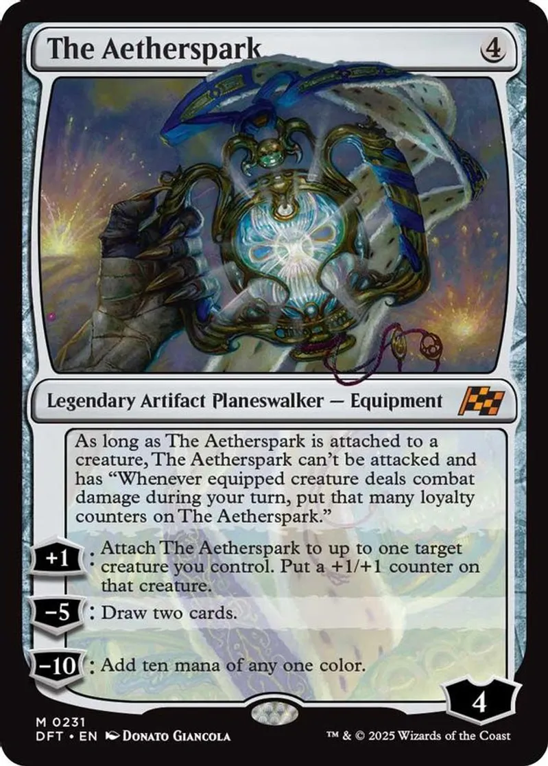 Magic: the Gathering (mtg) Mythic Rare legendary artifact planeswalker — equipment The Aetherspark from Aetherdrift (DFT) last updated 2026-01-28 14:21:06
