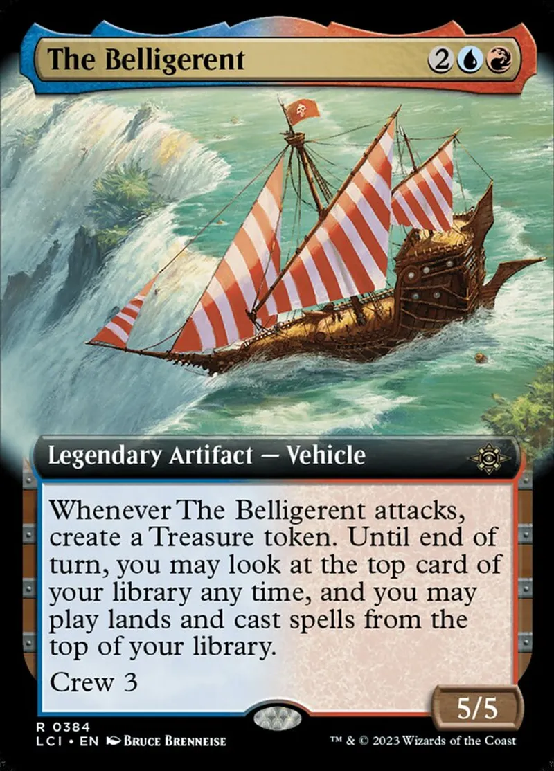 | Oracle Text | Whenever The Belligerent attacks, create a Treasure token. Until end of turn, you may look at the top card of your library any time, and you may play lands and cast spells from the top of your library.