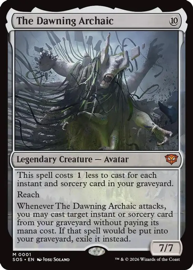 Magic: the Gathering (mtg) Mythic Rare legendary creature — avatar The Dawning Archaic from Secrets of Strixhaven (SOS) last updated 2026-04-16 23:10:35