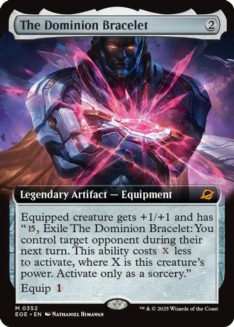 The Dominion Bracelet (Extended Art) is a Mythic Rare in the set Edge of Eternities.