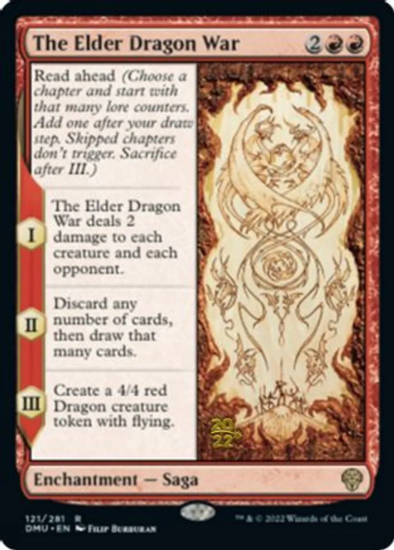 Magic: the Gathering (mtg) Rare Enchantment — Saga The Elder Dragon War from Prerelease Cards (pPRE) last updated 2026-02-24 15:38:32