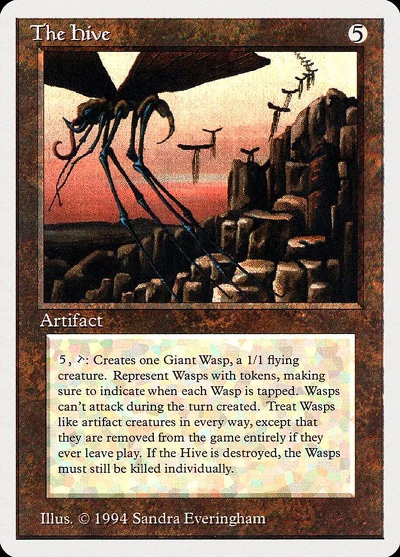 | Oracle Text | {5}, {T}: Create a 1/1 colorless Insect artifact creature token with flying named Wasp. (It can't be blocked except by creatures with flying or reach.) | ||
