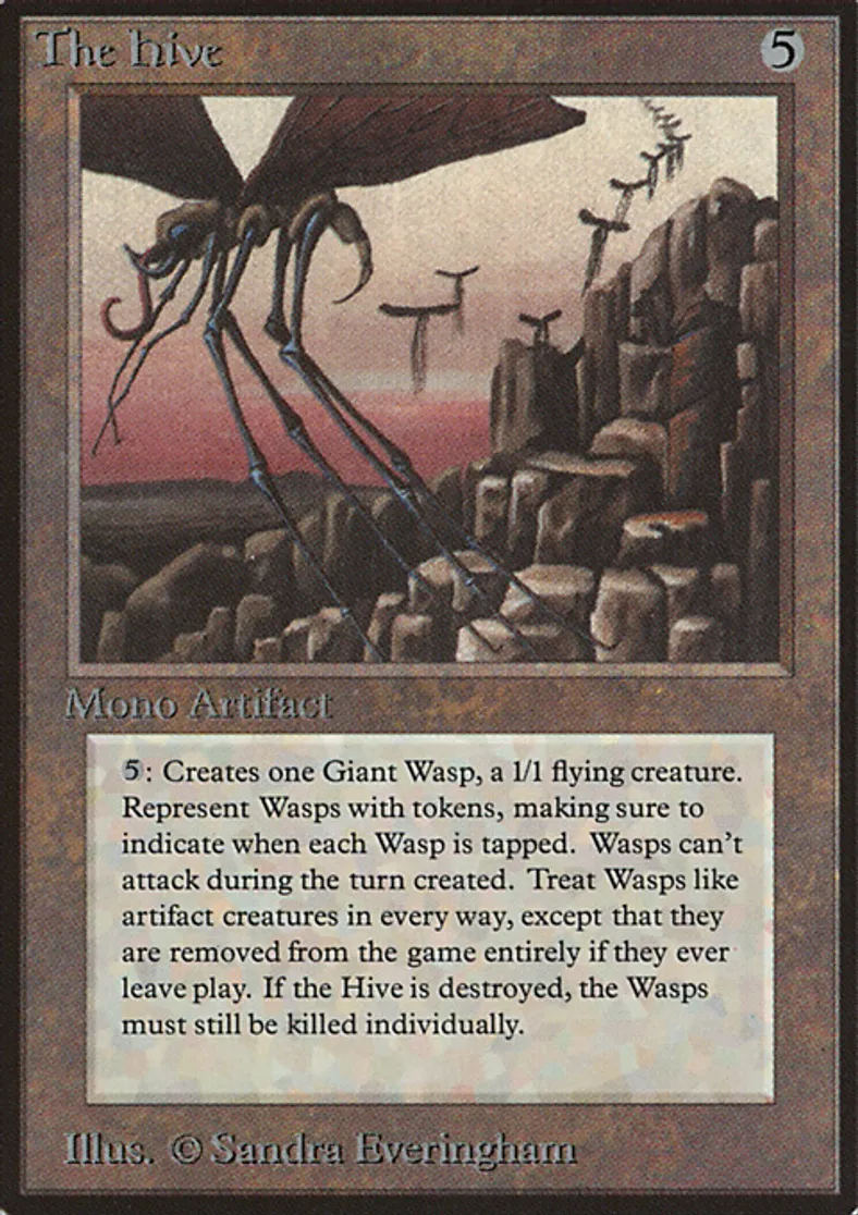 | Oracle Text | {{5}}, {{t}}: Put a 1/1 colorless Insect artifact creature token with flying named Wasp onto the battlefield. (It can't be blocked except by creatures with flying or reach.) | ||
