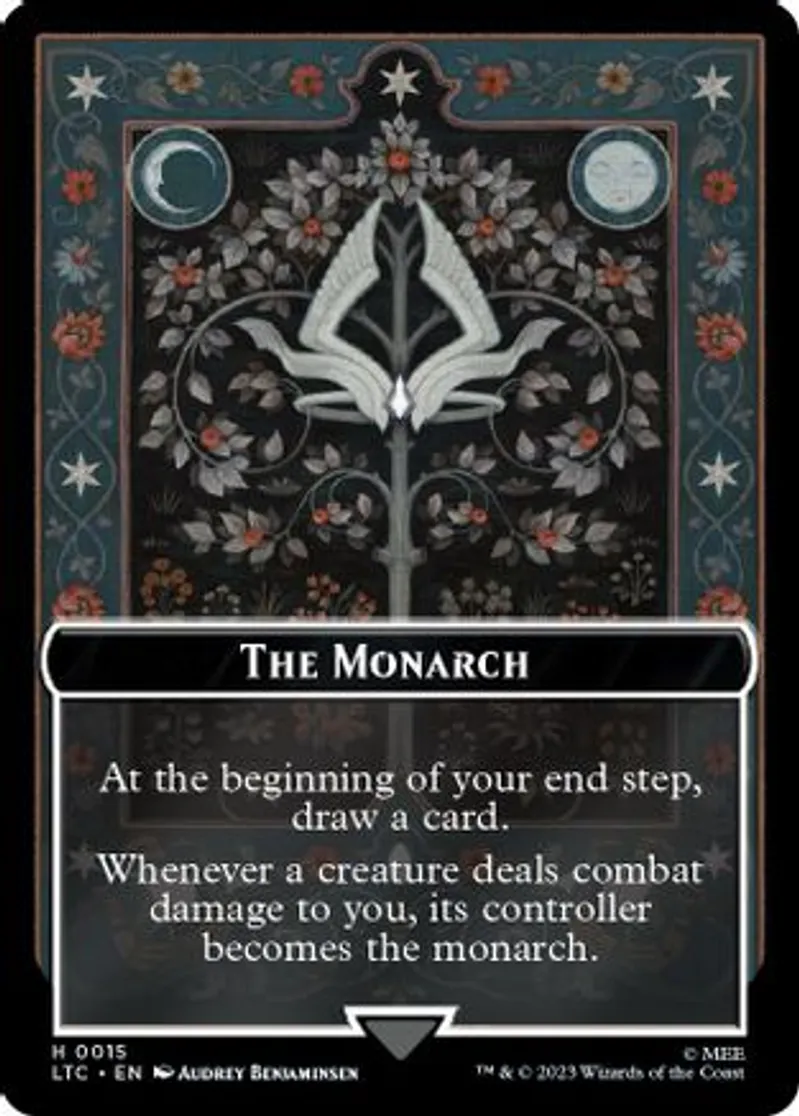 Magic: the Gathering (mtg) Token Emblem The Monarch // Treasure Double-Sided Token from Tales of Middle-earth Commander Tokens (TLTC) last updated 2026-03-31 15:54:35