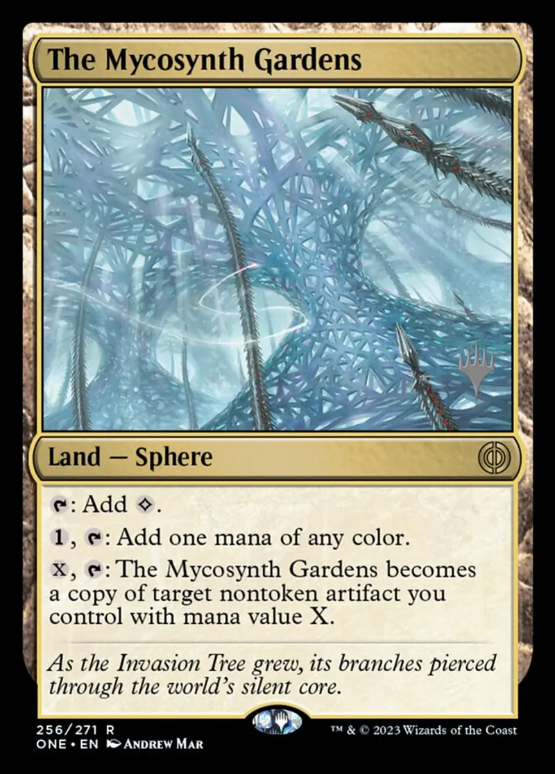 The Mycosynth Gardens is a Rare in the set Promo Pack: Phyrexian: All Will Be One.