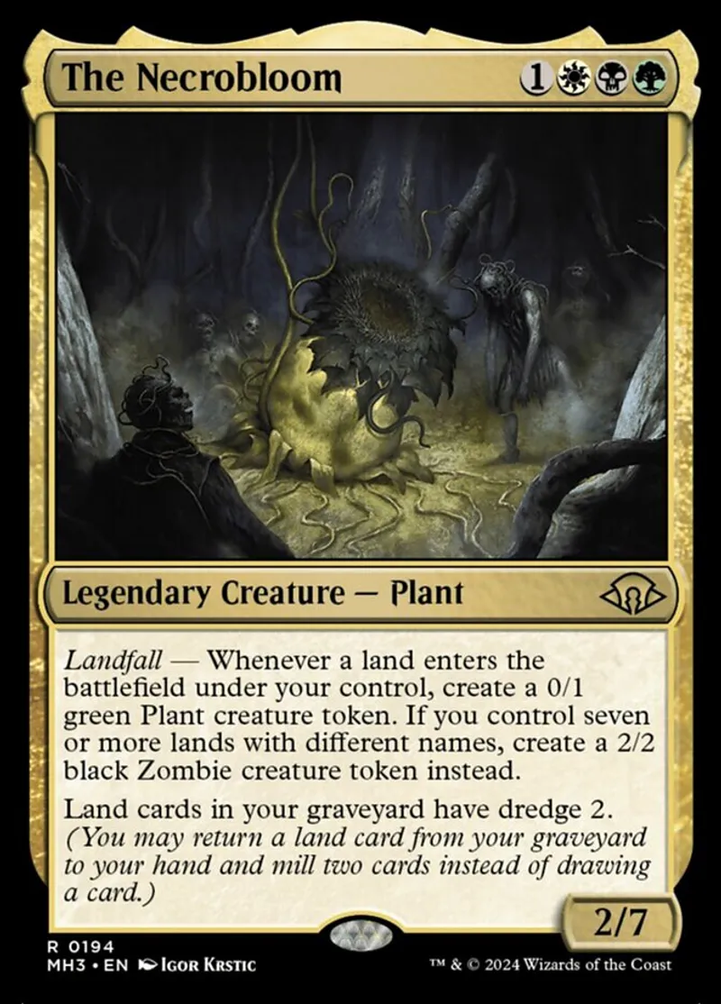 Magic: the Gathering (mtg) rare Legendary Creature — Plant The Necrobloom from Modern Horizons 3 (mh3) last updated 2026-02-28 15:20:08