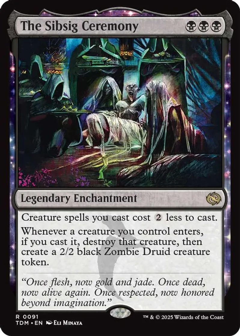 Magic: the Gathering (mtg) Rare legendary enchantment The Sibsig Ceremony from Tarkir: Dragonstorm (TDM) last updated 2025-12-20 15:05:32