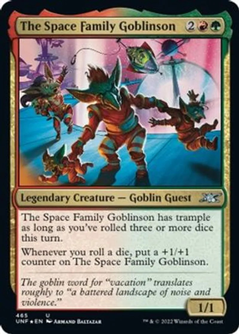 | Oracle Text | The Space Family Goblinson has trample as long as you've rolled three or more dice this turn.