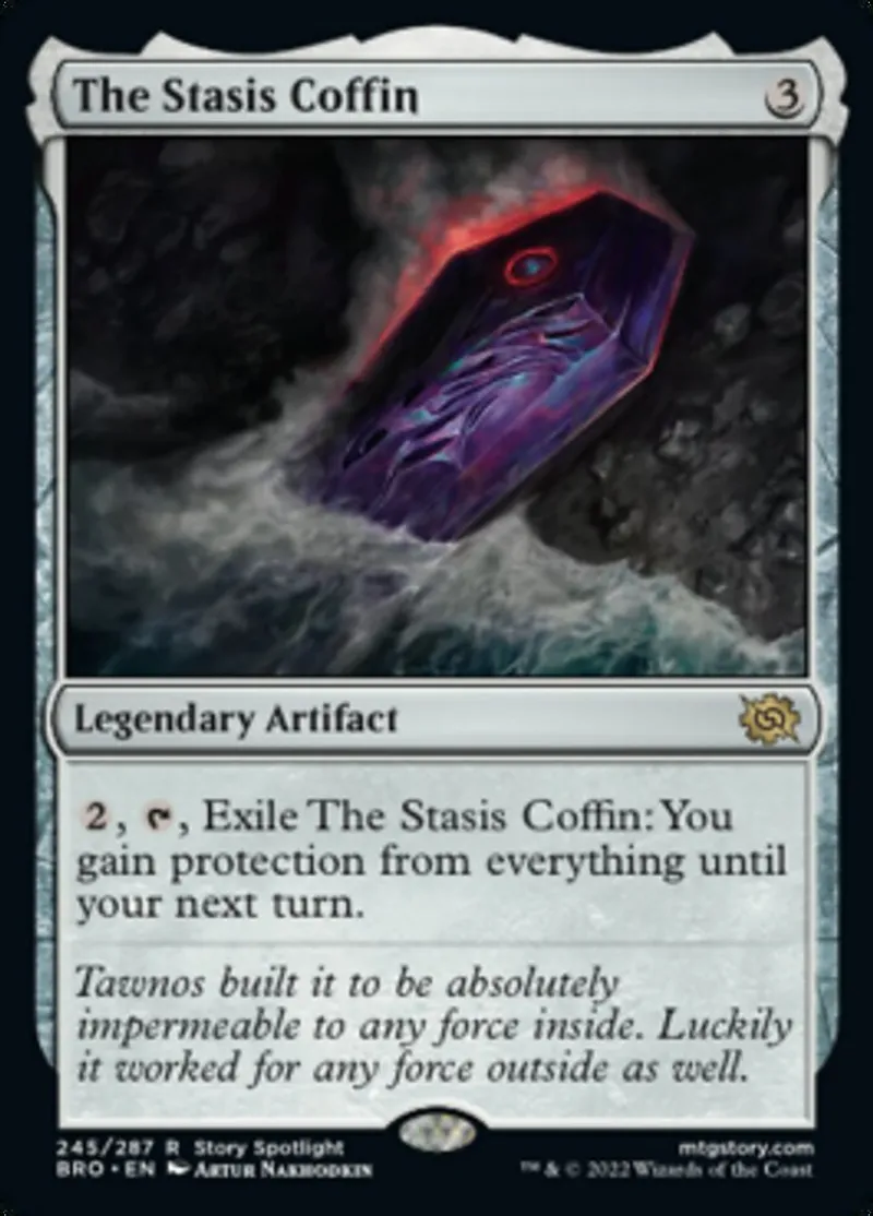 Magic: the Gathering (mtg) rare Legendary Artifact The Stasis Coffin from The Brothers' War (bro) last updated 2026-02-24 15:39:32