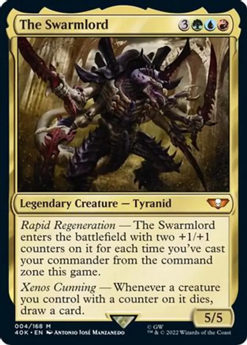 | Oracle Text | Rapid Regeneration — The Swarmlord enters the battlefield with two +1/+1 counters on it for each time you've cast your commander from the command zone this game.