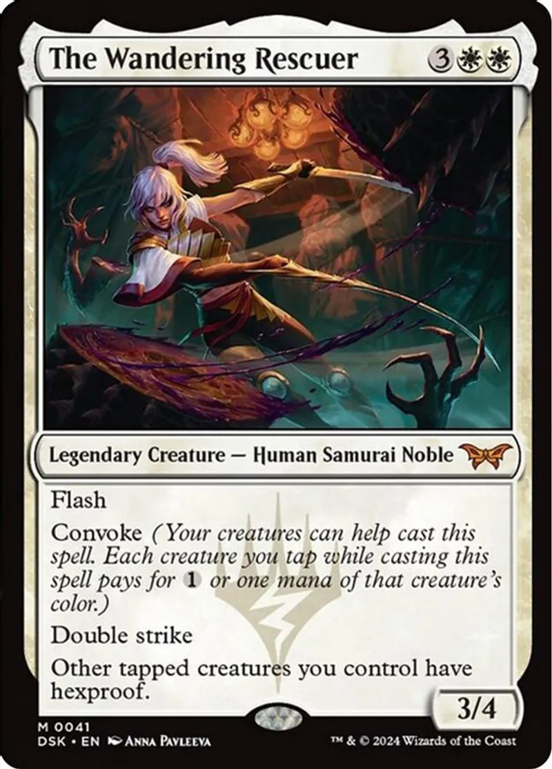 Magic: the Gathering (mtg) Mythic Rare legendary creature — human samurai noble The Wandering Rescuer from Duskmourn: House of Horror (DSK) last updated 2026-04-06 15:20:35