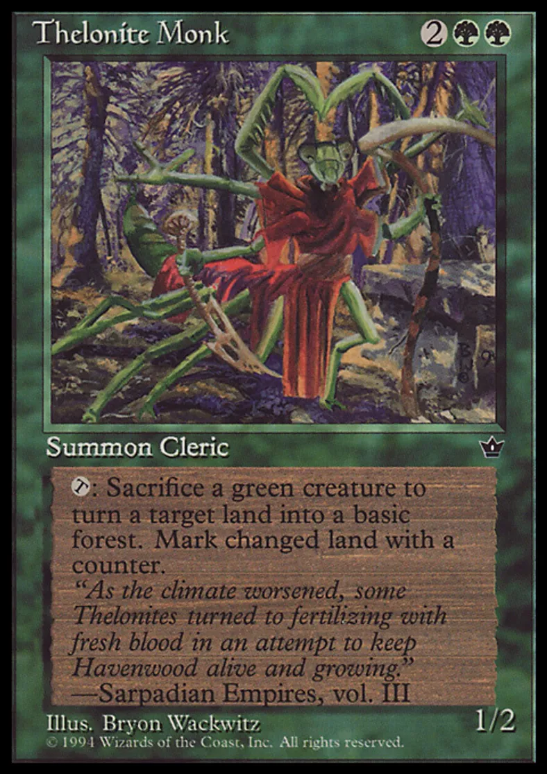 | Flavor Text | "As the climate worsened, some Thelonites turned to fertilizing with fresh blood in an attempt to keep Havenwood alive and growing."—Sarpadian Empires, vol. III | ||
