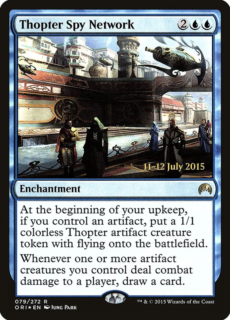 Magic: the Gathering (mtg) Rare Enchantment Thopter Spy Network from Prerelease Cards (pPRE) last updated 2026-02-24 14:42:02
