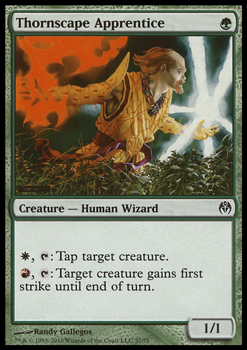 Thornscape Apprentice is a Common in the set Duel Decks: Phyrexia vs. the Coalition.