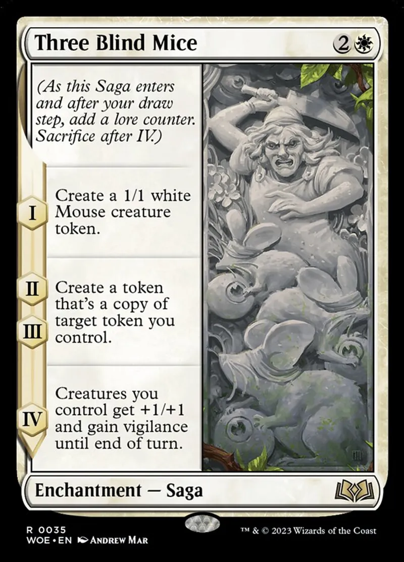 Magic: the Gathering (mtg) rare Enchantment — Saga Three Blind Mice from Wilds of Eldraine (woe) last updated 2026-02-24 15:44:32