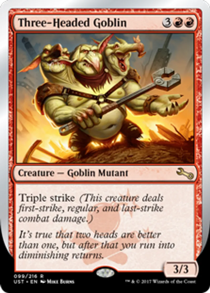 Magic: the Gathering (mtg) Rare Creature — Goblin Mutant Three-Headed Goblin from Unstable (UN3) last updated 2026-02-24 16:05:06