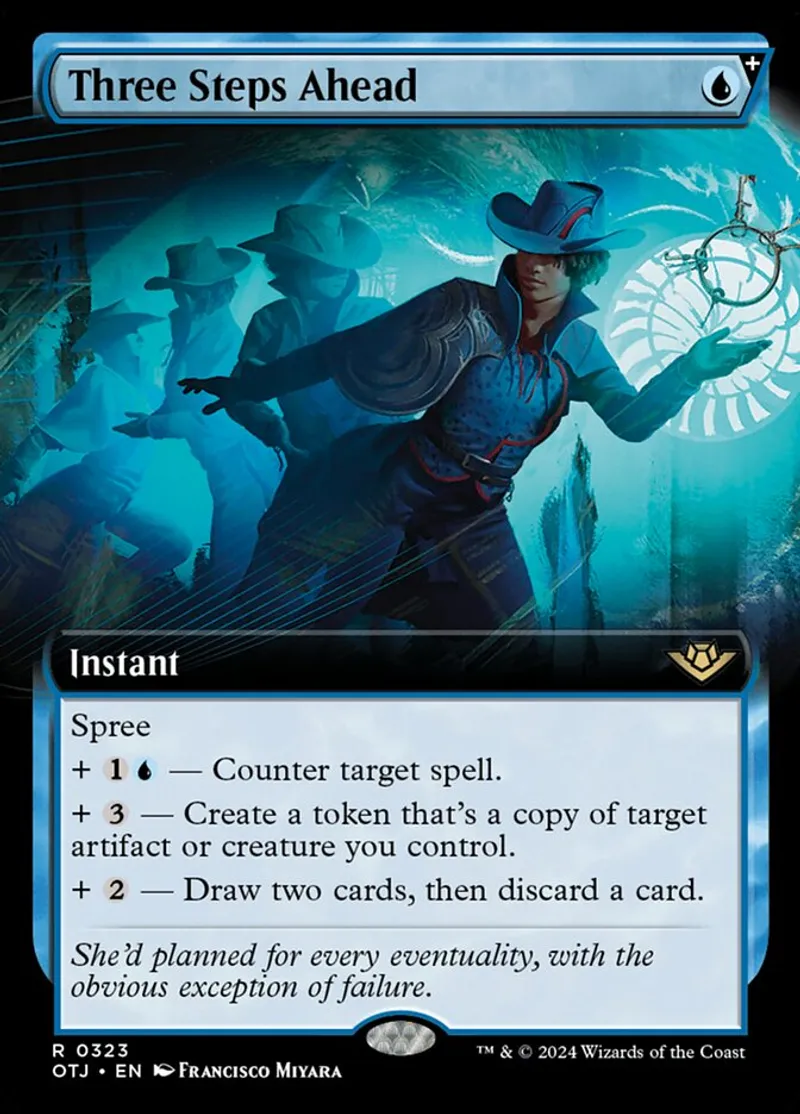 Three Steps Ahead (Extended Art) is a rare in the set Outlaws of Thunder Junction.