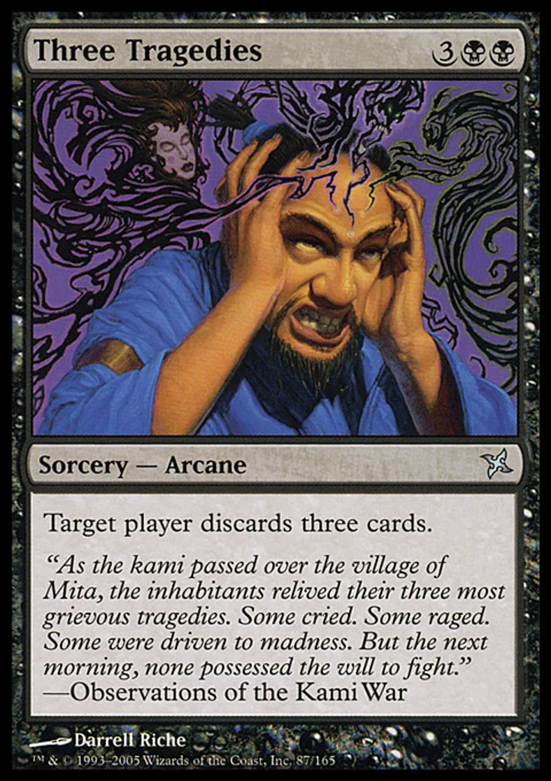 Three Tragedies is a Uncommon in the set Betrayers of Kamigawa.