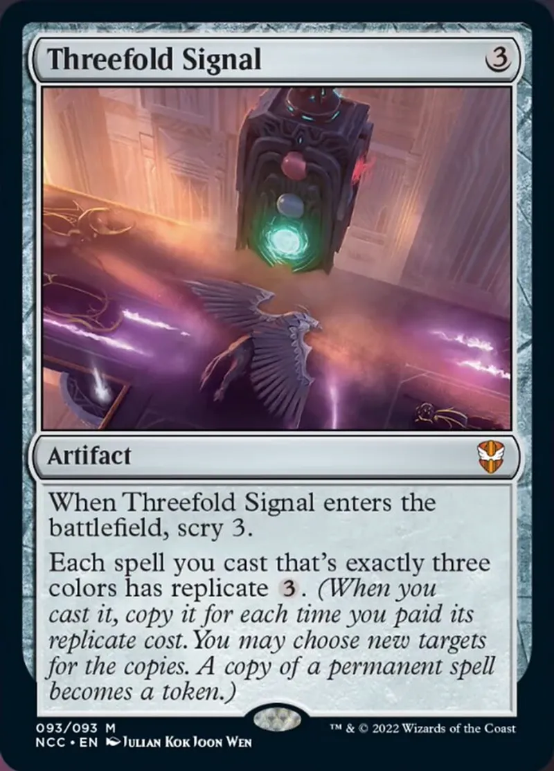 Threefold Signal is a mythic in the set New Capenna Commander.