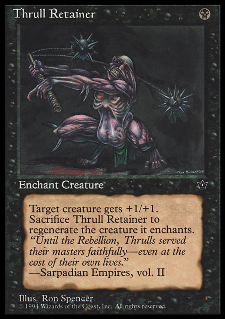 | Oracle Text | Enchant creature Enchanted creature gets +1/+1. Sacrifice Thrull Retainer: Regenerate enchanted creature. | ||