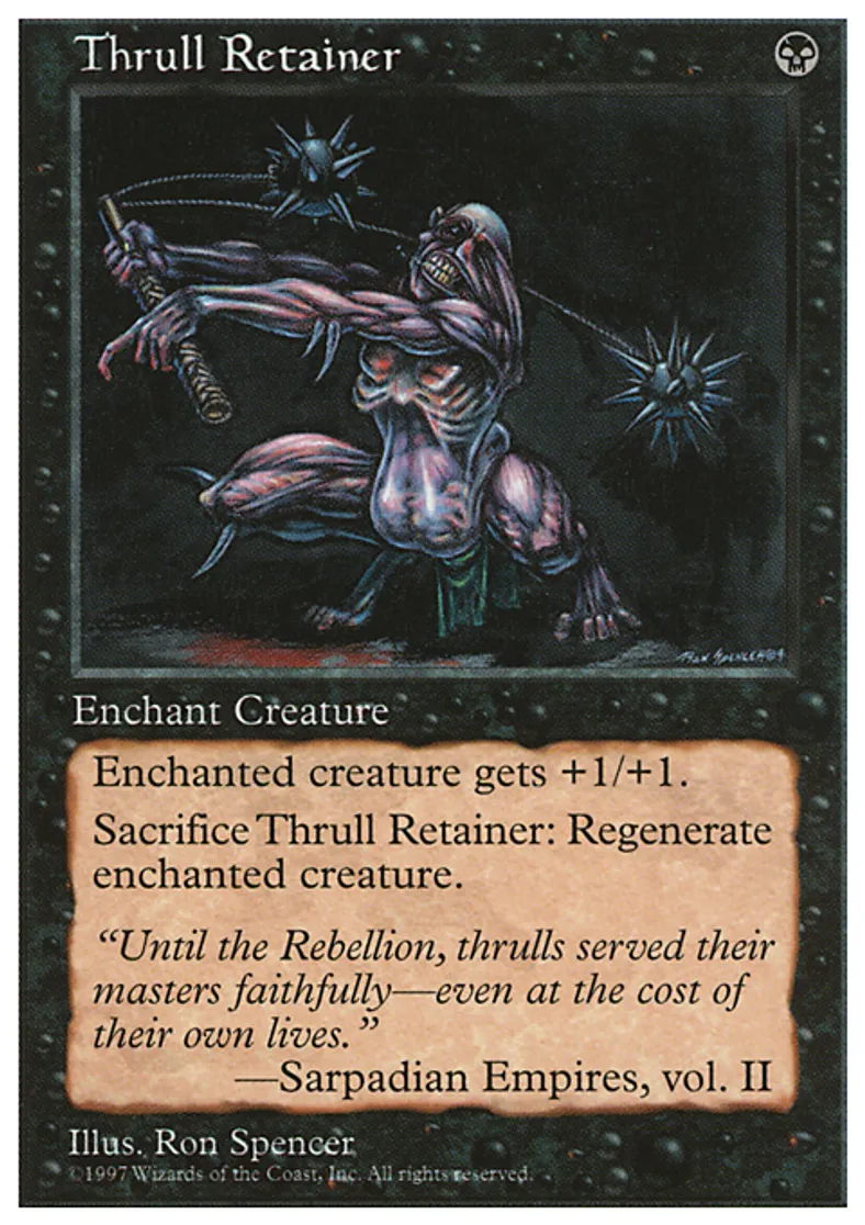 | Oracle Text | Enchant creature Enchanted creature gets +1/+1. Sacrifice Thrull Retainer: Regenerate enchanted creature. | ||