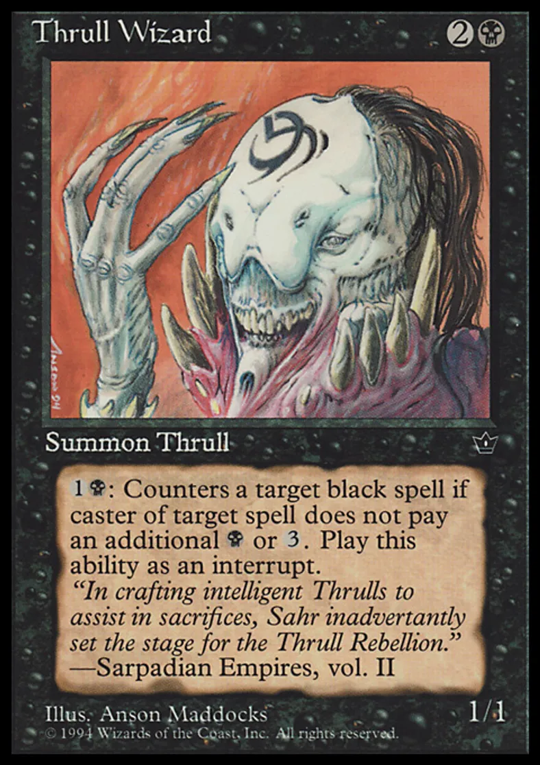 | Flavor Text | "In crafting intelligent Thrulls to assist in sacrifices, Sahr inadvertantly set the stage for the Thrull Rebellion."—Sarpadian Empires, vol. II | ||