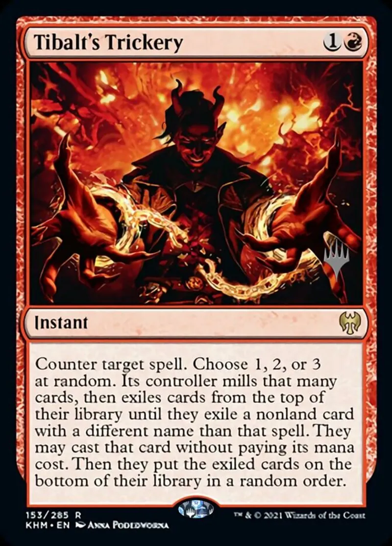 Magic: the Gathering (mtg) rare Instant Tibalt's Trickery from Promo Pack: Kaldheim (pKHM) last updated 2026-02-24 14:32:36