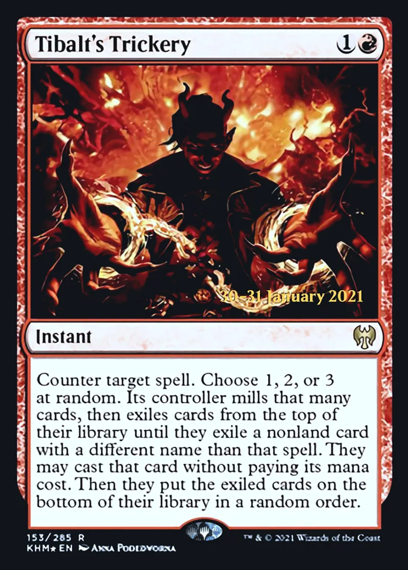 Magic: the Gathering (mtg) Rare Instant Tibalt's Trickery from Prerelease Cards (pPRE) last updated 2026-02-25 15:31:01